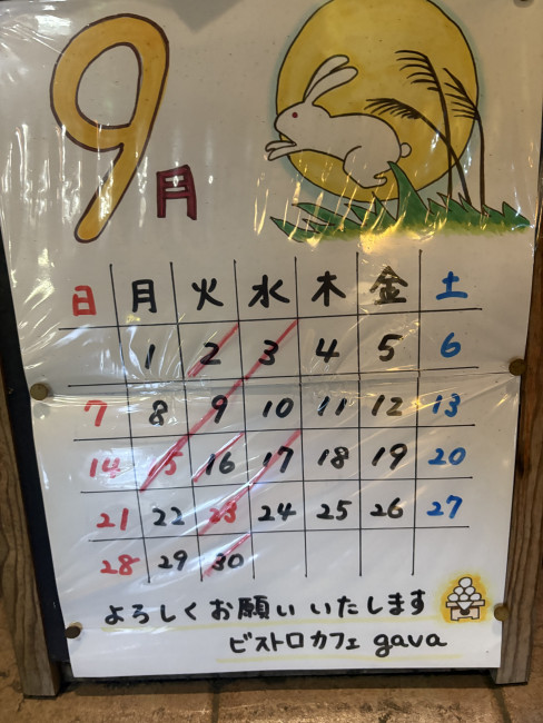 9月のお休みは2、9、15、16、17、23、30です